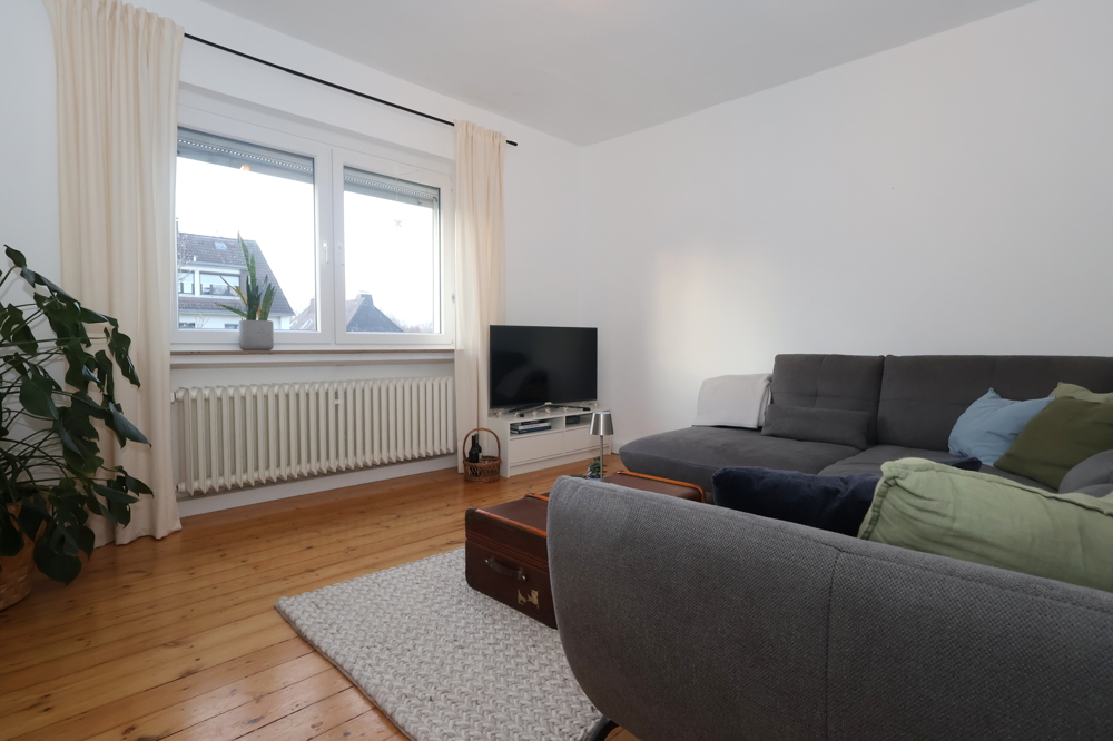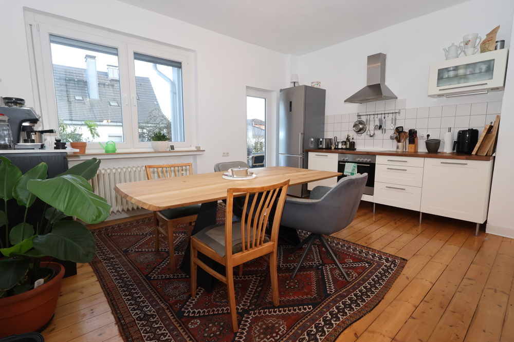 Die ca. 85 m² Wohnfläche verteilt sich auf einen gemütlichen Wohnbereich, eine Küche mit offenem Essbereich, zwei Schlafzimmer und ein Tageslichtbad.