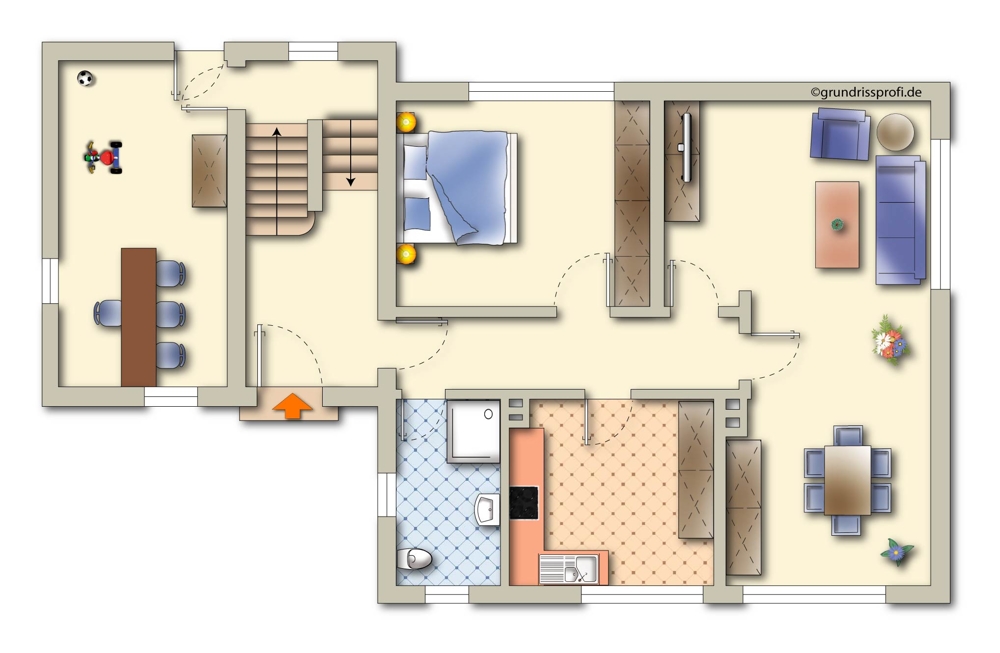 Etwas separat in dieser Etage gibt es noch einen großzügigen Raum, der als Spiel- oder Hobbyzimmer genutzt werden kann.