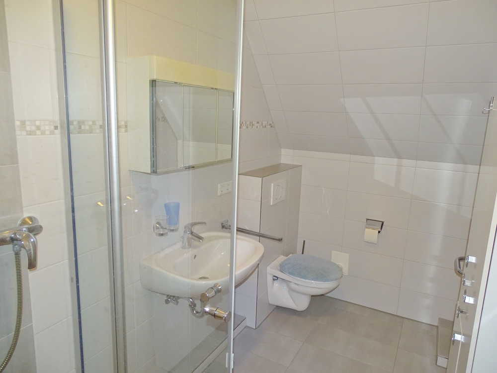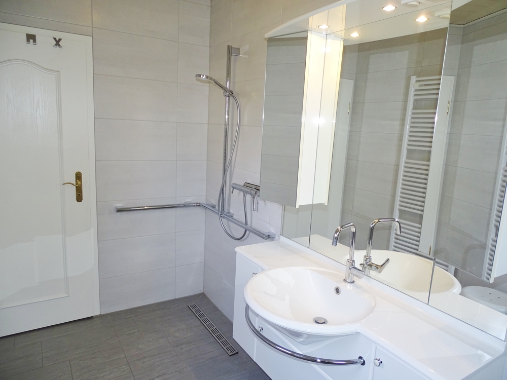 Das Bad wurde 2018 seniorengerecht, mit bodengleicher Dusche erneuert.