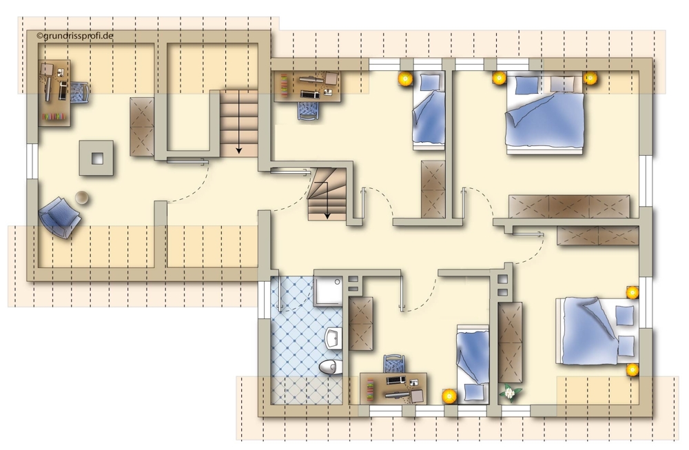Das Dachgeschoss beherbergt 4 Schlafzimmer und ebenso ein neuwertiges Duschbad, welches 2015 neu gemacht wurde