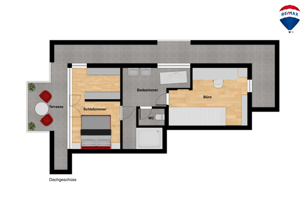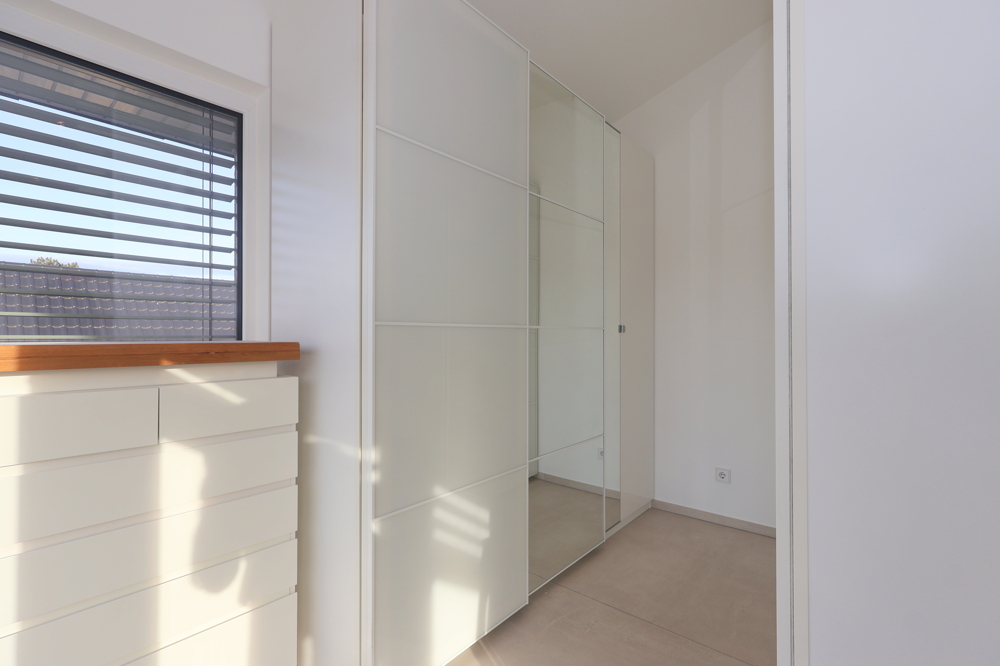 Das Hauptschlafzimmer überzeugt mit einem direkten Zugang zur Dachterrasse, die einen herrlichen Ausblick bietet und zum Entspannen einlädt. Ein weiteres Highlight ist das separate Ankleidezimmer, das zusätzlichen Stauraum und Komfort bietet.
