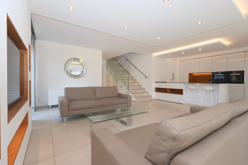 Abgerundet wird das Angebot durch die großzügige Dachterrasse, die sowohl für gesellige Abende als auch für ruhige Stunden im Freien genutzt werden kann. Diese Wohnung vereint modernes Design mit funktionalen Details und bietet somit ein ideales Zuhause für anspruchsvolle Bewohner.
