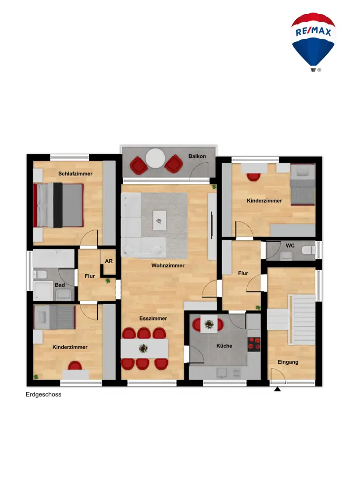 Neben dem Wohnbereich stehen drei weitere Zimmer zur Verfügung, die sich flexibel als Schlafzimmer, Kinderzimmer, Gästezimmer oder Homeoffice nutzen lassen. Die Räume sind freundlich belichtet und bieten gute Stellmöglichkeiten.
