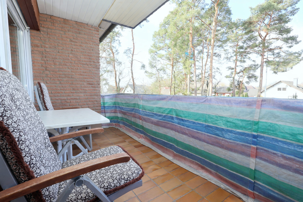 Ein Balkon erweitert den Wohnraum nach außen und bietet Platz für Sitzgelegenheiten.