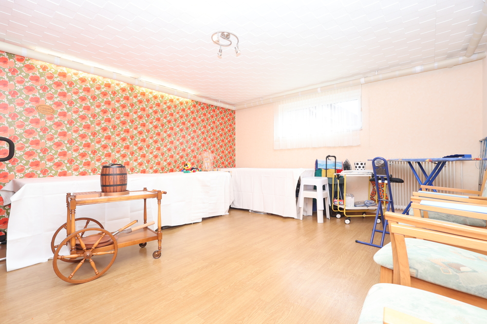 Der weitläufige Garten lädt zum Spielen, Entspannen und Gärtnern ein. Hier können Sie die sonnigen Tage in vollen Zügen genießen. Im Keller finden Sie zusätzlichen Stauraum sowie vielseitige Nutzungsmöglichkeiten, wie eine Werkstatt oder ein Spielzimmer.