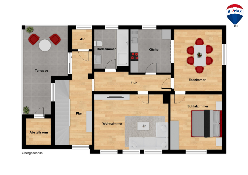 Im Obergeschoss erwartet Sie ein lichtdurchflutetes Wohn- und Esszimmer inklusive bereits geleisteter Vorinstallation für einen möglichen Kamin.