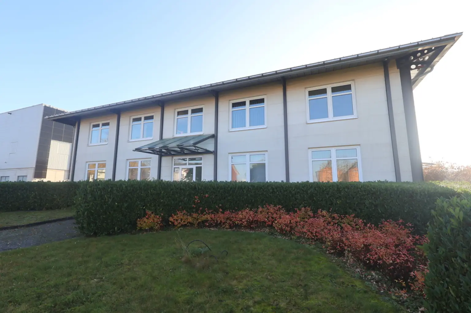 Dieses Bürogebäude aus dem Jahr 1992 bietet eine großzügige und funktionale Arbeitsumgebung für Gewerbetreibende. Die Bürofläche ist modern gestaltet und bietet ausreichend Platz für verschiedene Arbeitsbereiche. Große Fensterfronten sorgen für viel Tageslicht und schaffen eine angenehme Arbeitsatmosphäre.