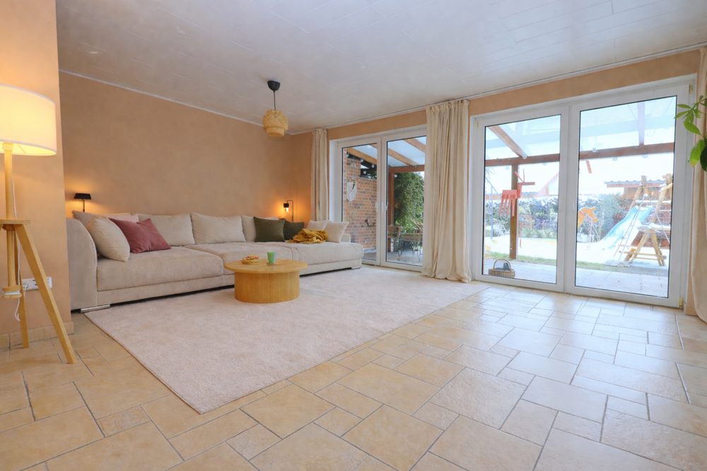 Diese traumhafte Doppelhaushälfte mit einer Wohnfläche von ca. 150 qm überzeugt durch eine durchdachte Raumaufteilung sowie durch eine helle, freundliche Wohnatmosphäre. Im Erdgeschoss befindet sich der großzügige Wohn- und Essbereich mit viel Tageslicht und direktem Blick in den Garten – ideal für ein gemeinsames Wohnen und entspannen. Die Küche ist funktional geschnitten und fügt sich harmonisch in das Wohnkonzept ein.