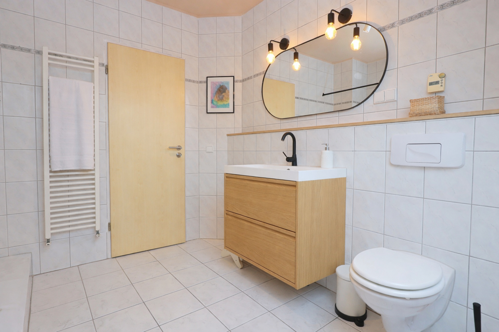 Im Obergeschoss stehen Ihnen mehrere gut nutzbare Zimmer zur Verfügung, die sich flexibel als Schlaf-, Kinder- oder Arbeitszimmer nutzen lassen. Ein Badezimmer ergänzt diese Etage komfortabel. Zusätzliche Abstell- und Nutzungsmöglichkeiten bietet der vollausgebaute Keller, der sich auch für Hobbys oder die Hauswirtschaft eignet.