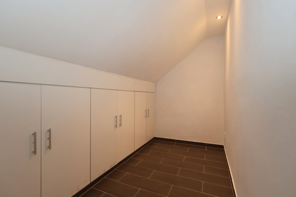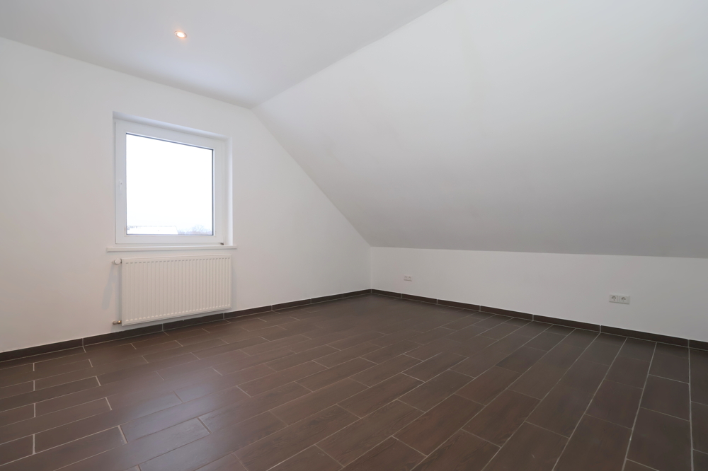 Neben dem Wohnbereich stehen drei weitere Zimmer zur Verfügung. Das Schlafzimmer bietet durch die Dachschrägen eine gemütliche Atmosphäre. Zwei weitere Räume eignen sich flexibel als Arbeitszimmer, Gästezimmer oder Hobbyraum und lassen sich dank klarer Grundformen gut möblieren.