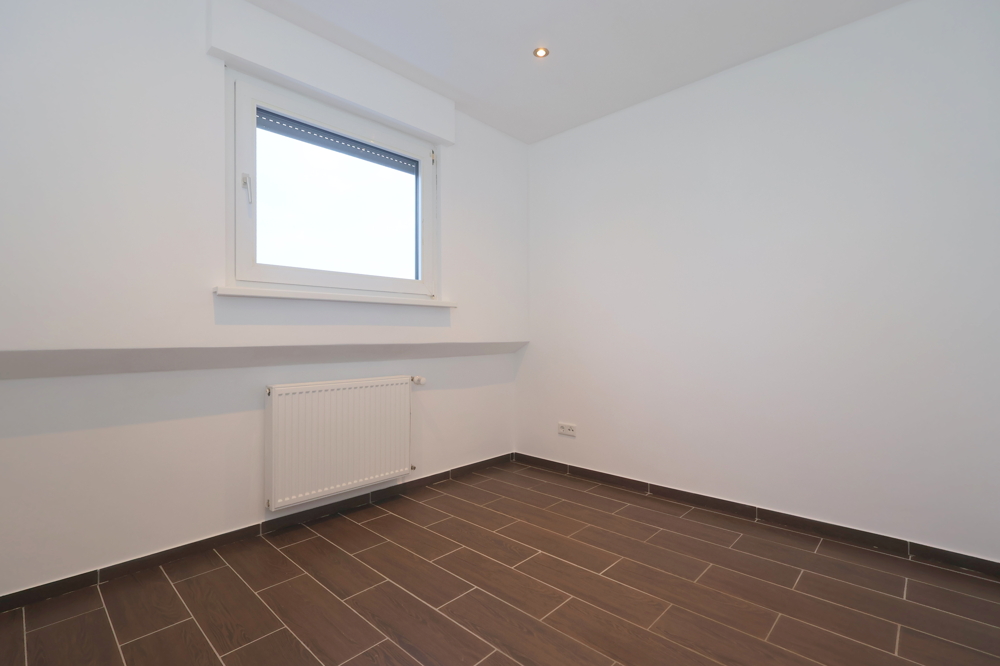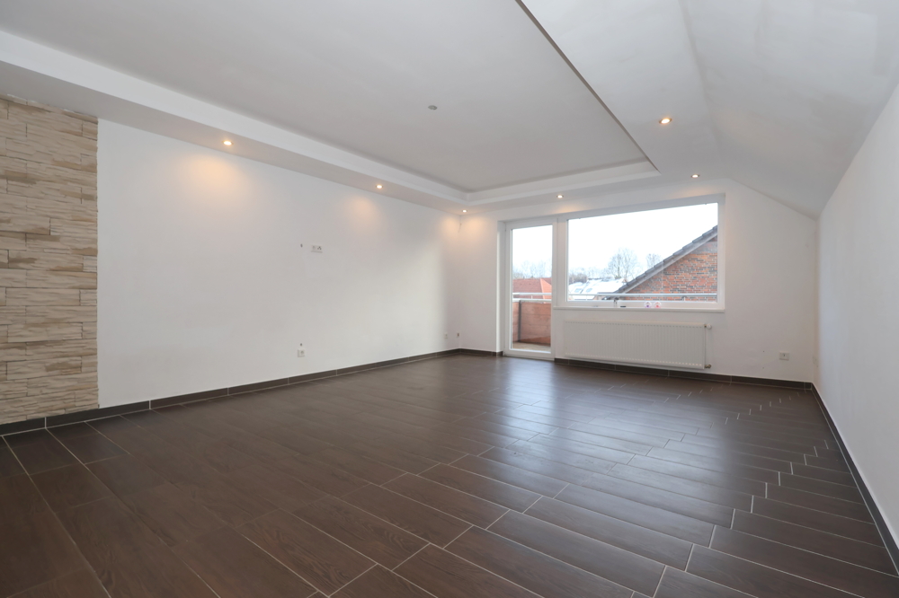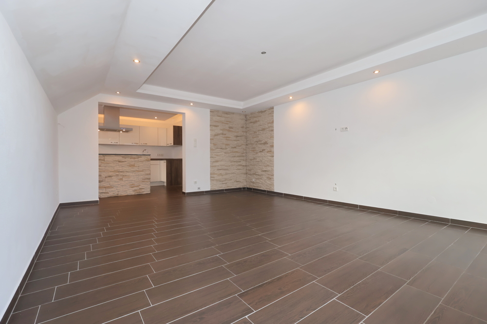 Diese renovierte Dachgeschosswohnung bietet auf ca. 92 m² vier gut nutzbare Zimmer und einen klaren, modernen Look. Helle Wände, großformatige dunkle Bodenfliesen und Einbauspots sorgen in mehreren Räumen für ein aufgeräumtes Wohngefühl.