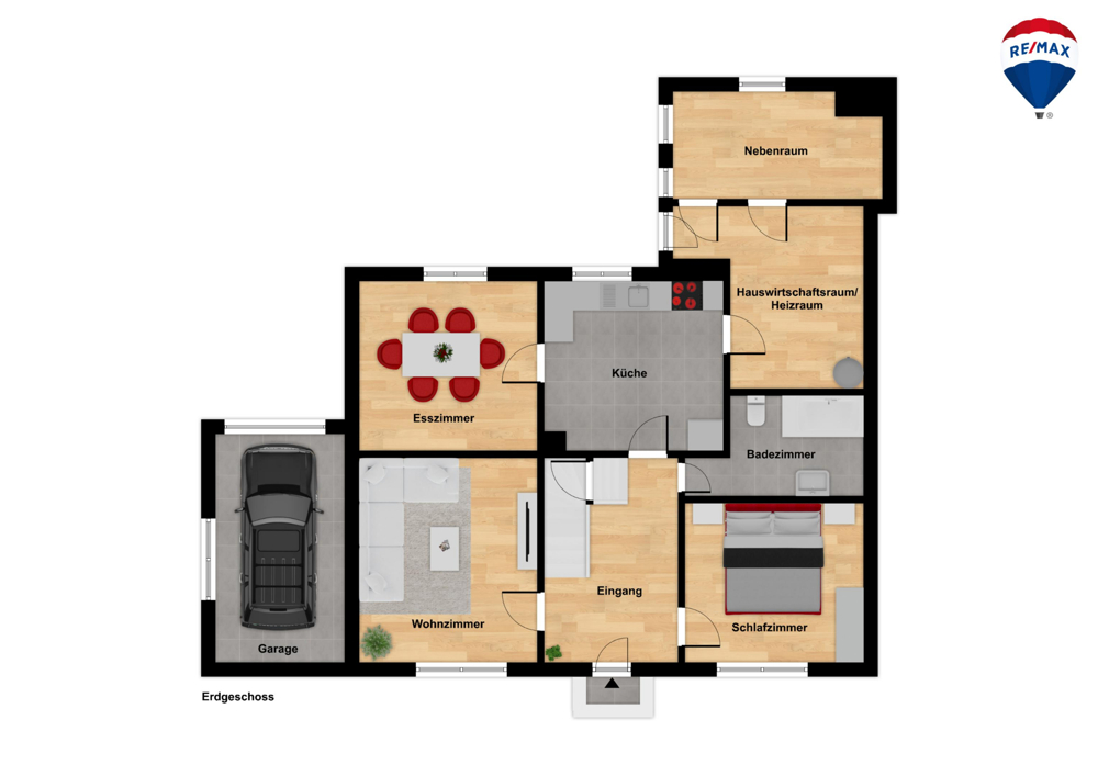 Das direkte Umfeld ist eher kleinräumig und geprägt von einer überschaubaren Nachbarschaft. Gleichzeitig sprechen die vorhandene Infrastruktur, die schnelle Autobahnanbindung und die Nähe zum Flughafen für eine Lage, die Ruhe und Mobilität sinnvoll kombiniert.