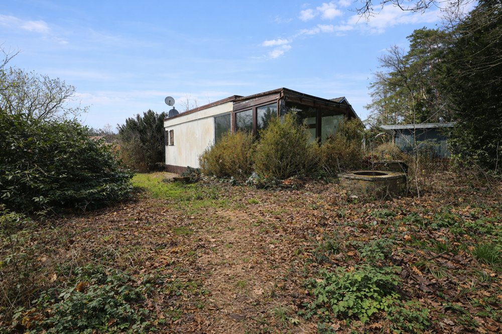 Auf ca. 1.050 m² Grundstücksfläche eröffnet sich hier eine seltene Gelegenheit für kreative Köpfe, Visionäre und Individualisten, sich ihren ganz persönlichen Wohntraum zu verwirklichen. Der vorhandene Bungalow (ca. 40 m² Wohnfläche) steht seit mehreren Jahren leer und befindet sich in einem nicht bewohnbaren Zustand. Eine umfassende Sanierung oder ein Abriss mit anschließendem Neubau bieten sich daher an.