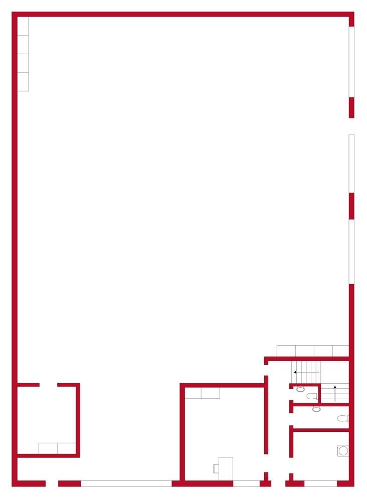 Das Objekt ist aufgeteilt in einen großen offenen Bereich, mit einer nutzbaren Fläche von ca. 400 qm.