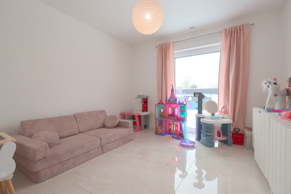 Der exklusive Elternbereich ist eine wahre Wohlfühloase: Ein großzügiges Schlafzimmer mit Panorama-Blick, ein luxuriöses Bad en suite mit bodentiefer Dusche, freistehender Badewanne, hochwertigem Waschtisch, WC und Bidet sowie ein separates Ankleidezimmer schaffen einen Rückzugsort, der Komfort neu definiert.