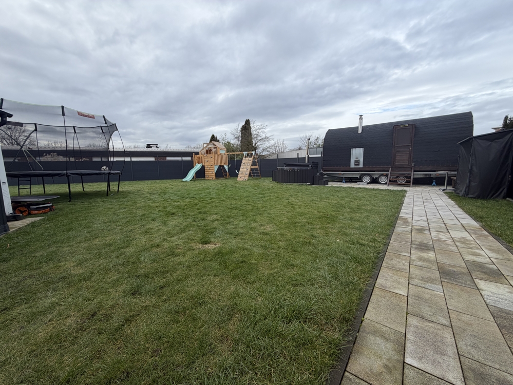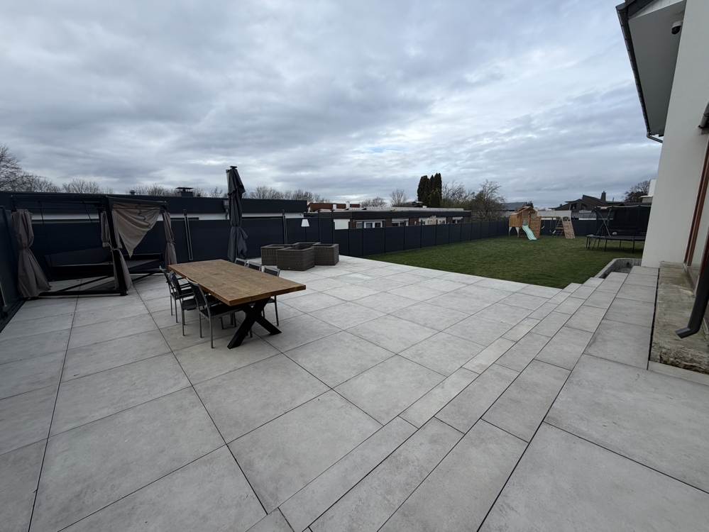Die aufwendig gestaltete Außenanlage gleicht einer privaten Wohlfühloase. Eine großzügige Terrasse, ein überdachter Grillplatz, viel Freiraum, ein Gartenhaus sowie ein Spielturm für Kinder schaffen Raum für Entspannung, Genuss und gemeinsame Momente.
