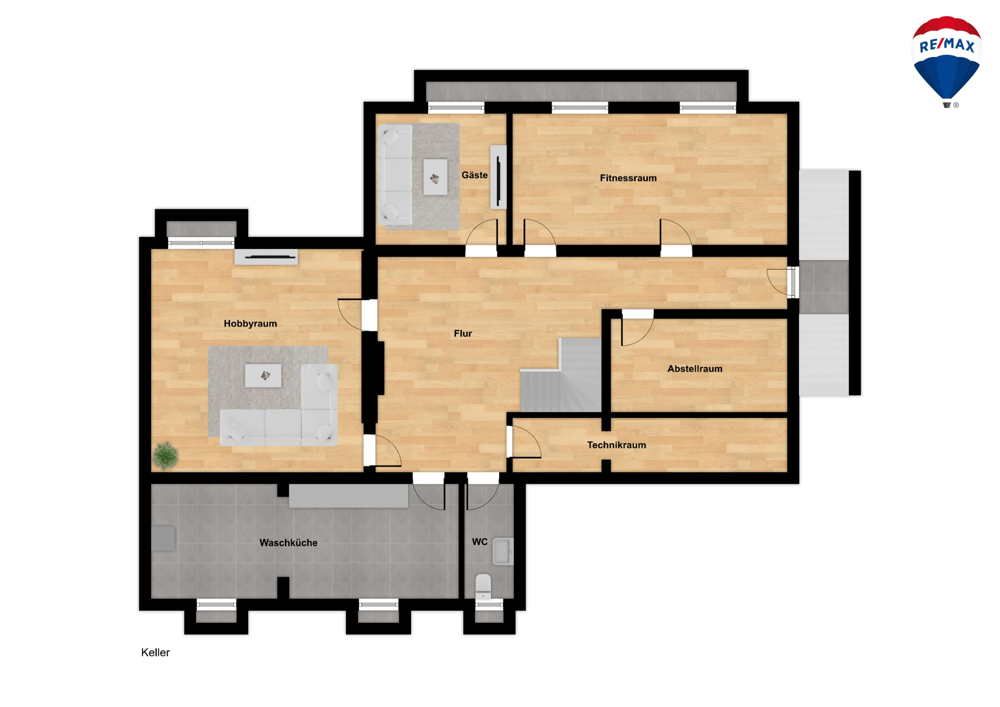 Das Kellergeschoss setzt neue Maßstäbe: Ein privates Home-Gym für Ihr tägliches Training, ein großzügiger Partyraum für gesellige Abende, ein weiteres Gästezimmer, ein Waschkeller, Abstell- und Technikräume bieten vielfältige Nutzungsmöglichkeiten. Dank des separaten Hauszugangs eignet sich dieser Bereich auch ideal für Gäste oder individuelle Konzepte.