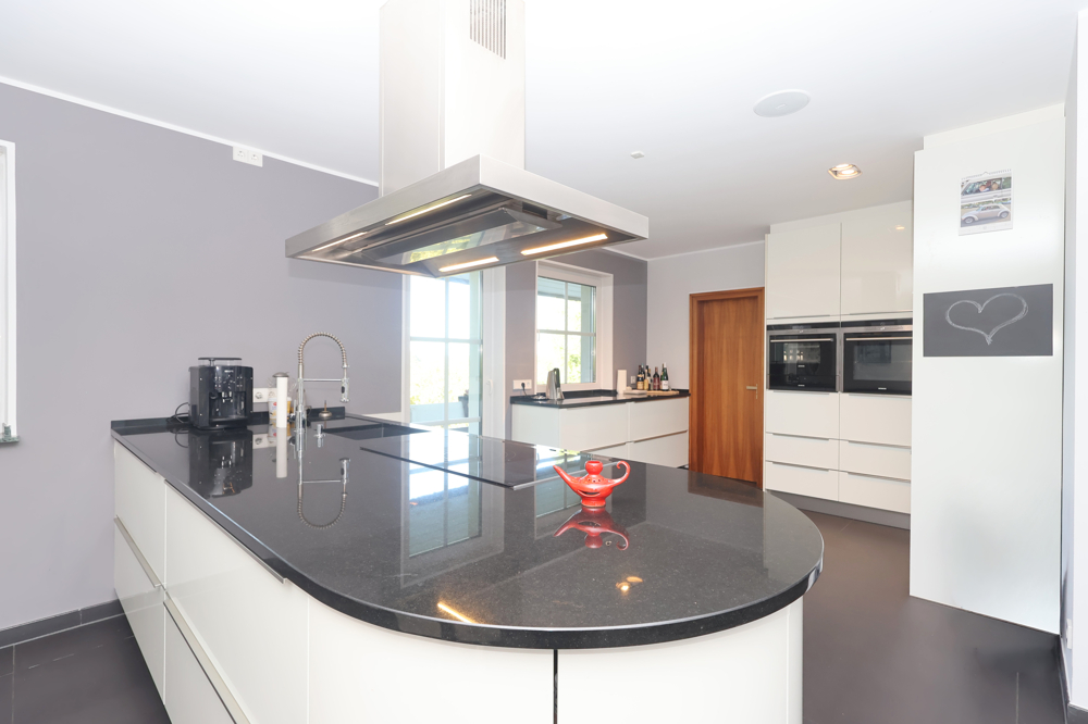 Die moderne Küche ist mit allen modernen Geräten ausgestattet, die das Herz eines Kochs höher schlagen lassen. Sie bietet gleichzeitig viel Stauraum und eine perfekte Arbeitsfläche, sowie einen spektakulären Blick auf das umliegende Sauerland.