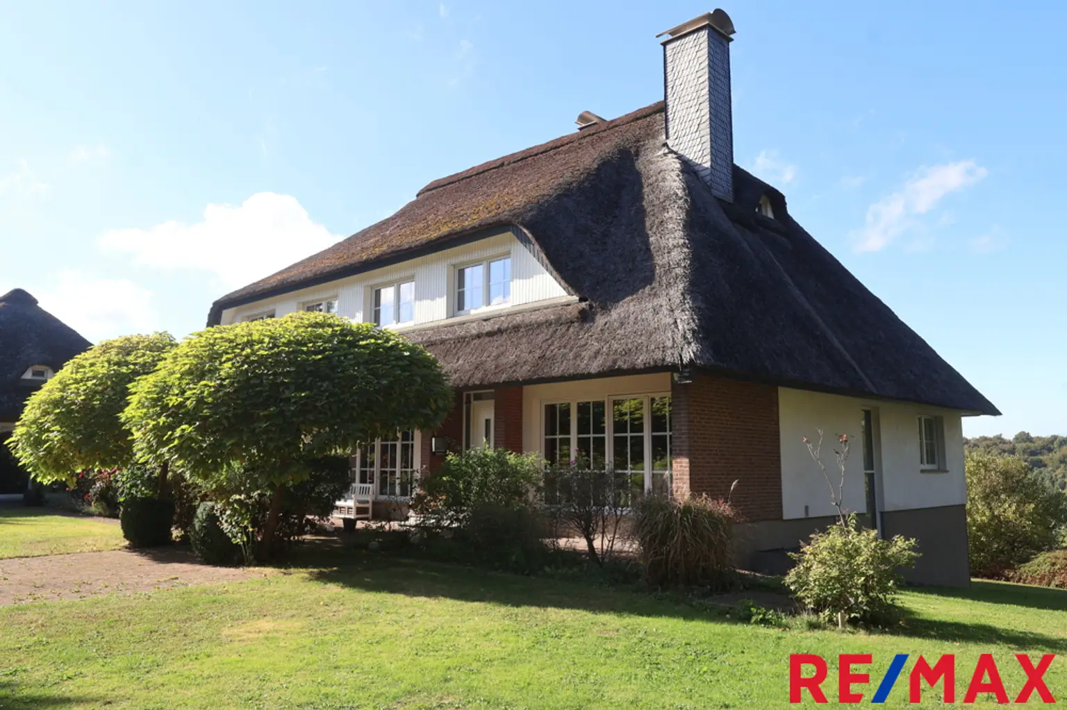 Diese beeindruckende Villa mit klassischem Reetdachstil ist ein wahrer Rückzugsort und bietet Ihnen sowohl eine luxuriöse Ausstattung als auch eine idyllische Lage in der Natur des Sauerlandes.