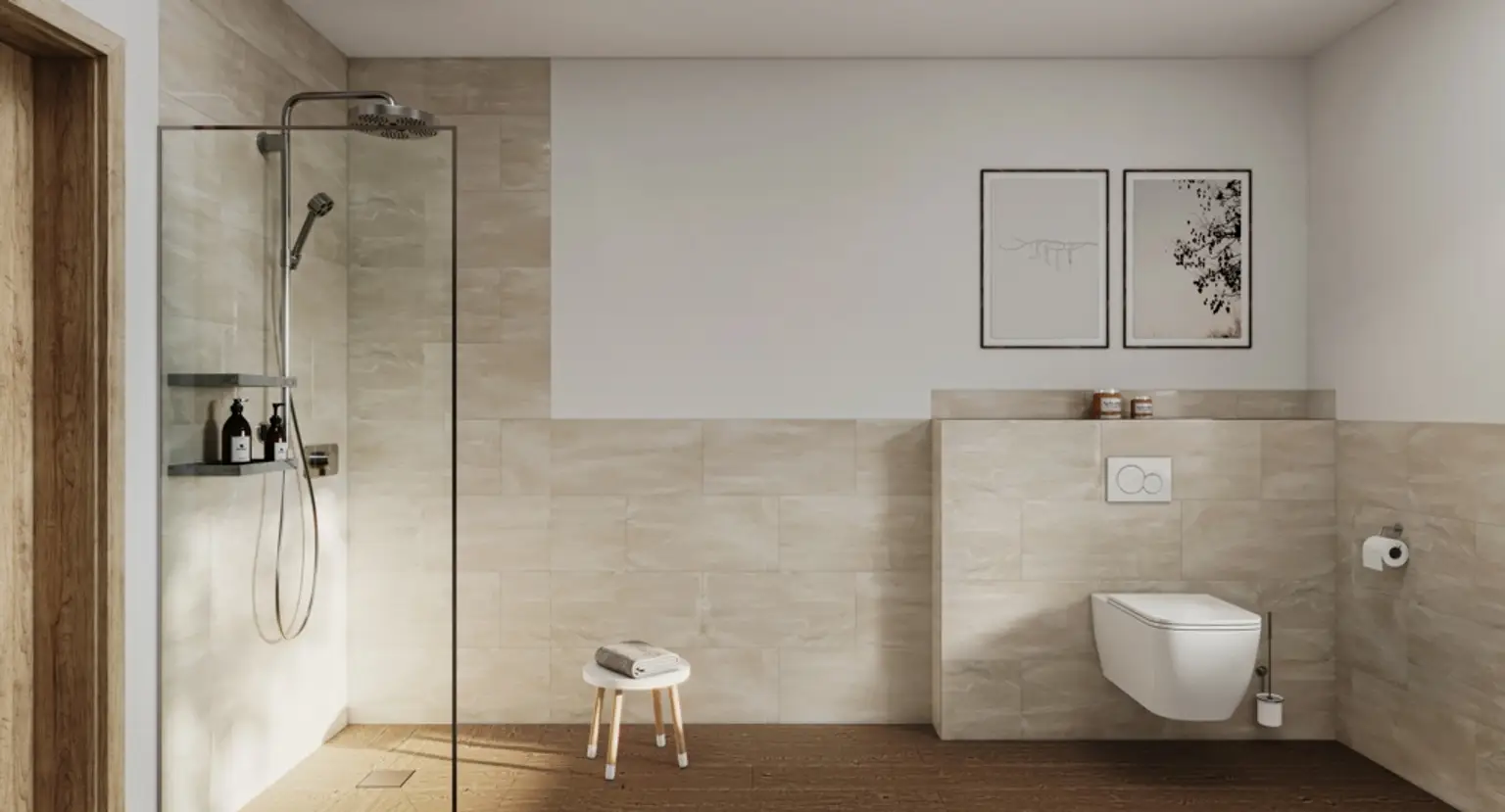 Auf einer Ebene befinden sich 2 Zimmer, ein geräumiger Wohn- und Essbereich mit einer offenen Küchenzeile sowie ein sehr schönes Badezimmer.