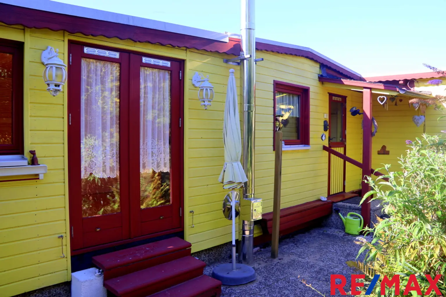 Abgerundet wird das Angebot durch eine Gartenhütte, die genügend Stauraum bietet.